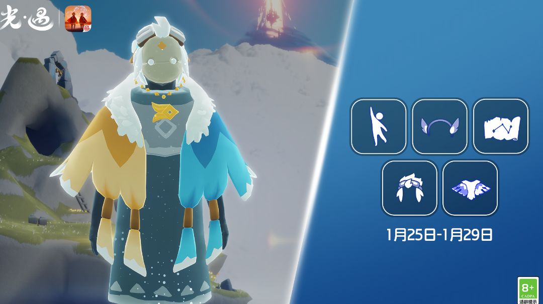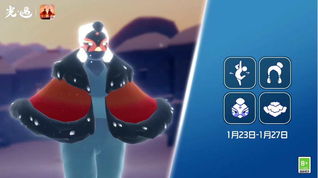 本次复刻:风行季-活跃导航员 1.25早6点-29中12点😊 推荐光崽们兑换斗篷挺可爱的☺️挺适合矮人搭的 先祖位置:雨林右侧风行网道风行季地图里,左侧岛屿上 先祖物品:翊羽斗篷, 挡风镜马尾发型 ,单片羽毛头饰,乐谱,动作 图片和穿搭转载自大神@柠檬味的2546(~侵~删~) 兑换树图仅供参考 图片穿搭来自大神@柠檬味的2546(~侵~删~)