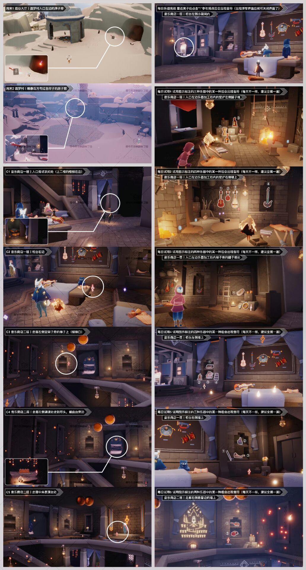 四位旅拍先祖即将抵达天空王国啦!有任何关于先祖回归的信息都会第一时间公布在帖子里哦!以后可以在这里找到先祖回归站,大家记得不要迷路哦! 《光遇》游戏中每天的每日任务及大蜡烛的位置都不相同,玩家完成每日任务及收集大蜡烛都可以得到丰厚的兑换奖励,奖励可以用于兑换各种动作及道具,不过很多小伙伴不知道每日任务怎么做,又懒得自己去找大蜡烛的位置,我们汇总了每日任务的完成攻略以及蜡烛位置,一起来看看吧! 图1