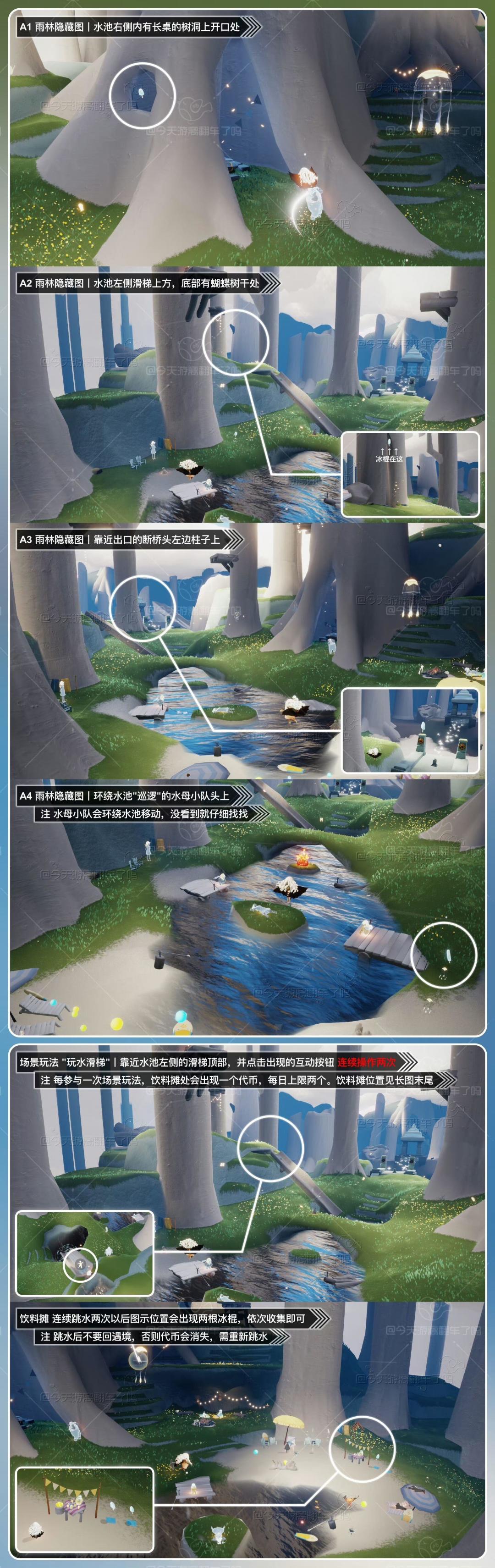 《光遇》游戏中每天的每日任务及大蜡烛的位置都不相同,玩家完成每日任务及收集大蜡烛都可以得到丰厚的兑换奖励,奖励可以用于兑换各种动作及道具,不过很多小伙伴不知道每日任务怎么做,又懒得自己去找大蜡烛的位置,我们汇总了每日任务的完成攻略以及蜡烛位置,一起来看看吧! 图1 今日季节蜡烛位置(雨林) 图2 今日任务详解 图3 今日大蜡烛点(全图) 图4 可能的落石位置(图示位置随机出一处) 图5 本周四复刻