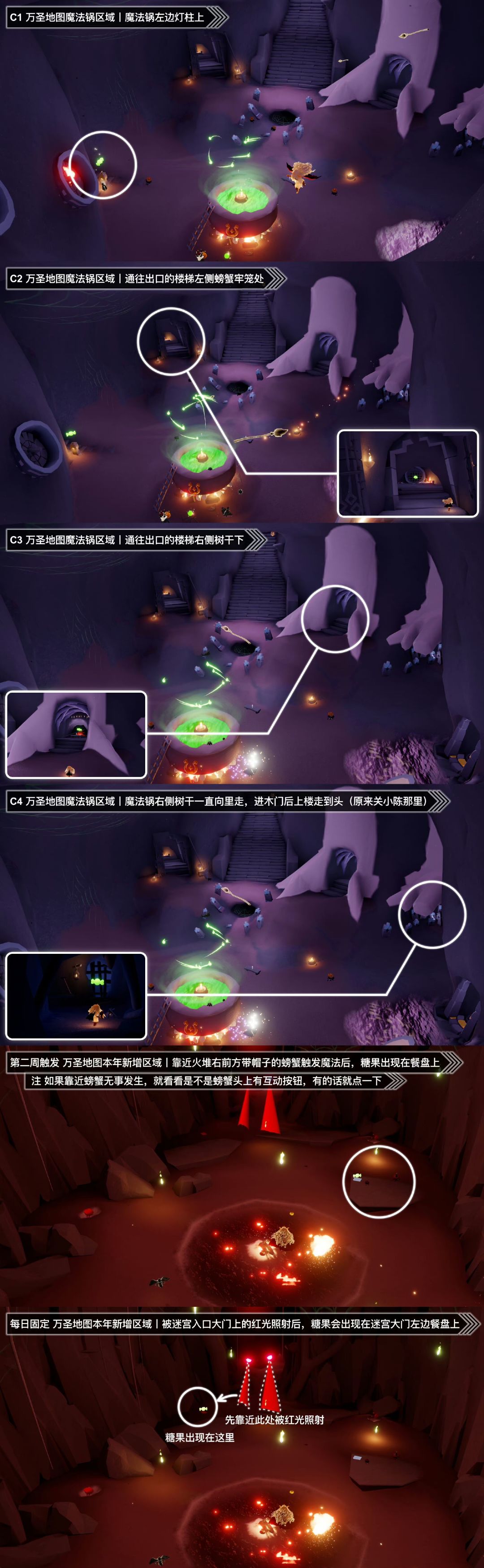 《光遇》游戏中每天的每日任务及大蜡烛的位置都不相同,玩家完成每日任务及收集大蜡烛都可以得到丰厚的兑换奖励,奖励可以用于兑换各种动作及道具,不过很多小伙伴不知道每日任务怎么做,又懒得自己去找大蜡烛的位置,我们汇总了每日任务的完成攻略以及蜡烛位置,一起来看看吧! 图1 今日糖果币位置 图2 今日季节蜡烛(禁阁) 图3 今日任务详解 图4 今日大蜡烛点(暮土) 图5 恶作剧之日兑换树 图6 恶作剧之日地