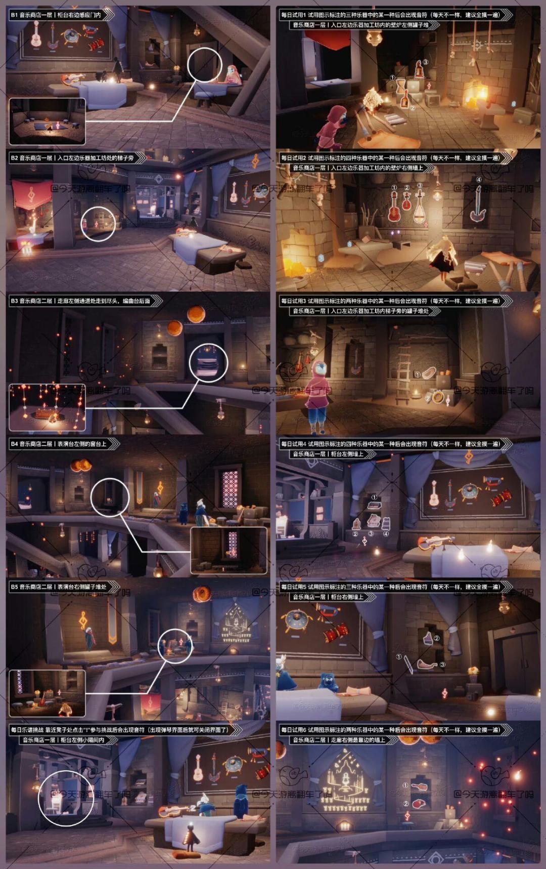 《光遇》游戏中每天的每日任务及大蜡烛的位置都不相同,玩家完成每日任务及收集大蜡烛都可以得到丰厚的兑换奖励,奖励可以用于兑换各种动作及道具,不过很多小伙伴不知道每日任务怎么做,又懒得自己去找大蜡烛的位置,我们汇总了每日任务的完成攻略以及蜡烛位置,一起来看看吧! 图1 今日音乐票位置 图2 今日季节蜡烛位置(霞谷) 图3 今日任务详解 图4 今日大蜡烛点(雨林禁阁) 图5 可能的落石点(图示位置随机出