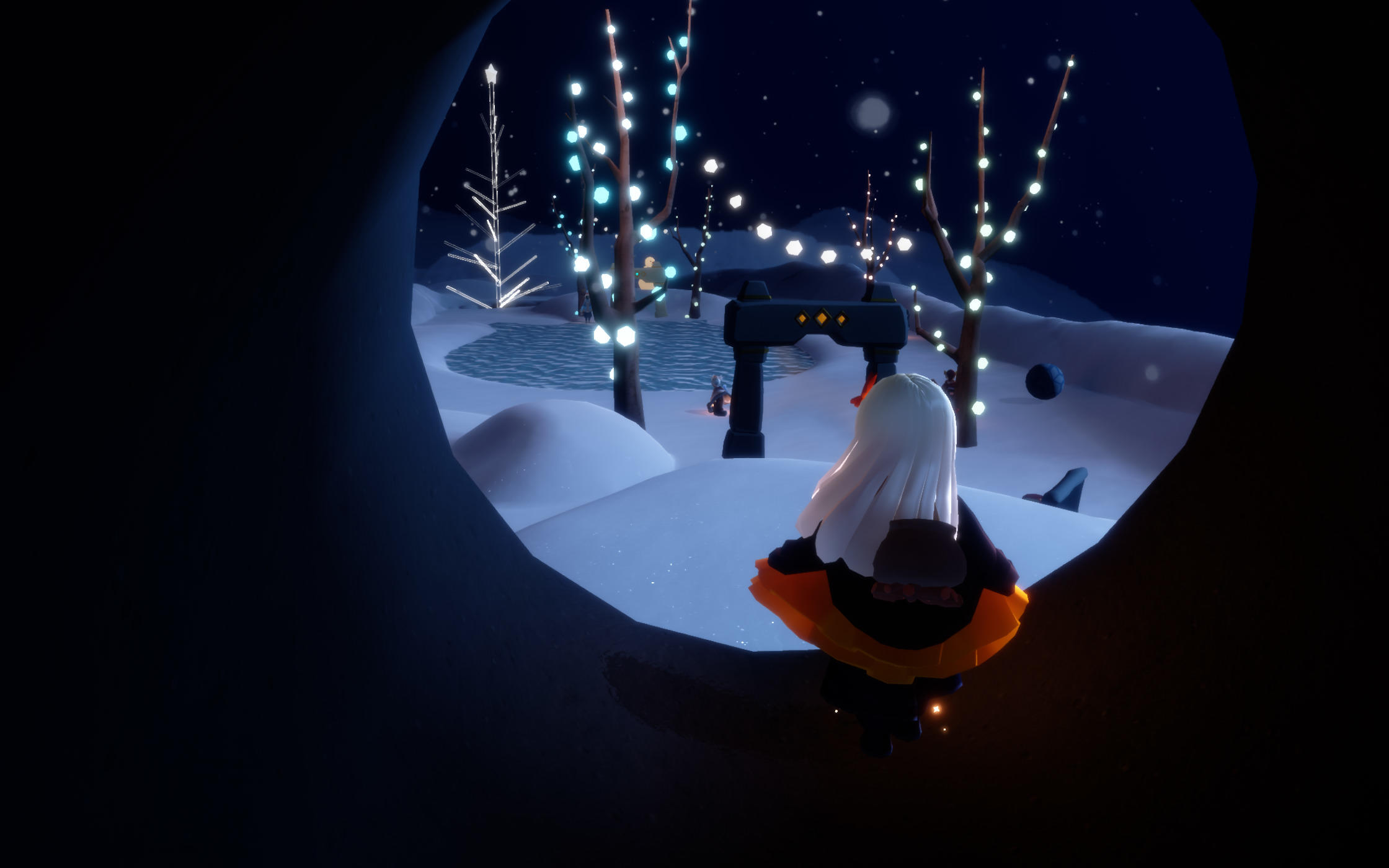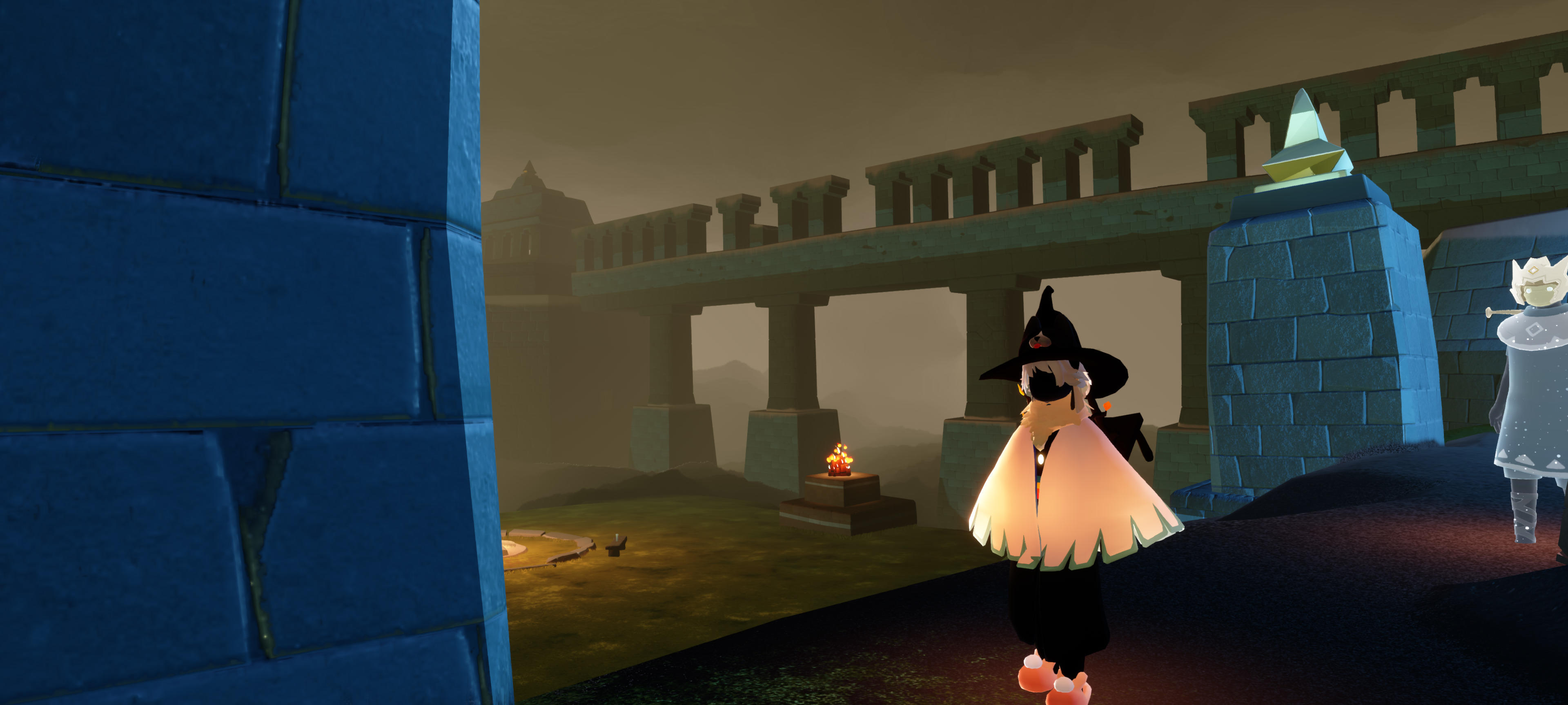 这个季节常驻换的铃铛很没用啊,只能自己听个响,同时摸两个铃铛技巧,就是正面夹在两个铃铛中间,光崽左手放左边铃铛上,然后摸右边的铃#光遇 铛,就能一起响啦