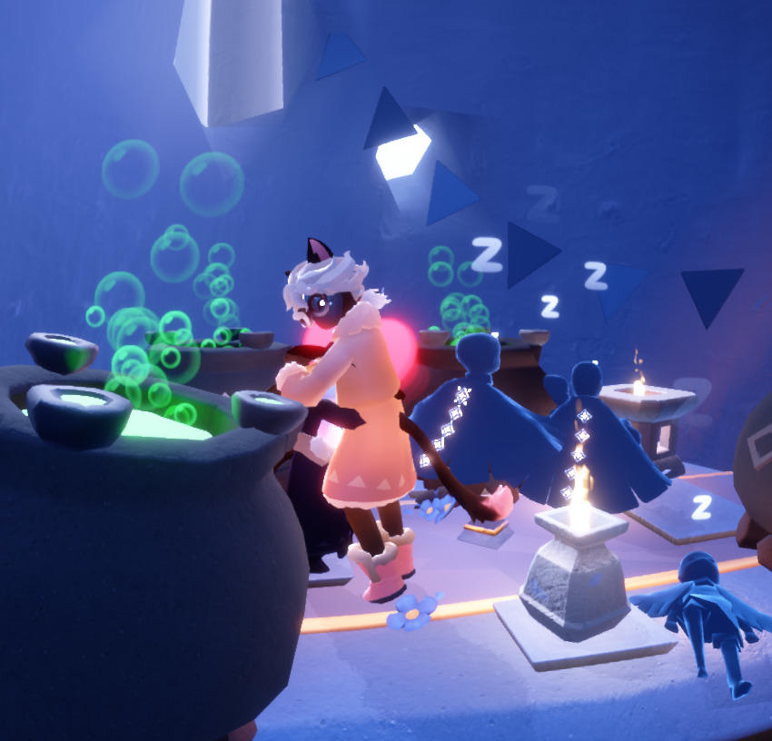 是云野罚站途中突然有小黑点我,对我叭叭两声,看我回叭了然后掏蜡烛,我拒了一次还加加上疯狂解好友树,然后说了一堆不知所云的话最后问了是她和好友吵架把对方拉黑了,然后以为和自己玩的所有陌生人都是那个好友的小号就是姐们你可能真的没自己想象中那么重要,只是游戏好友没有联系方式的话,就犯不着这样来找你,更不用说我只是在罚站,你自己掏蜡烛加我的这个剧情还像那个光遇剧,很火的那个,我就说不正常的光遇剧害
