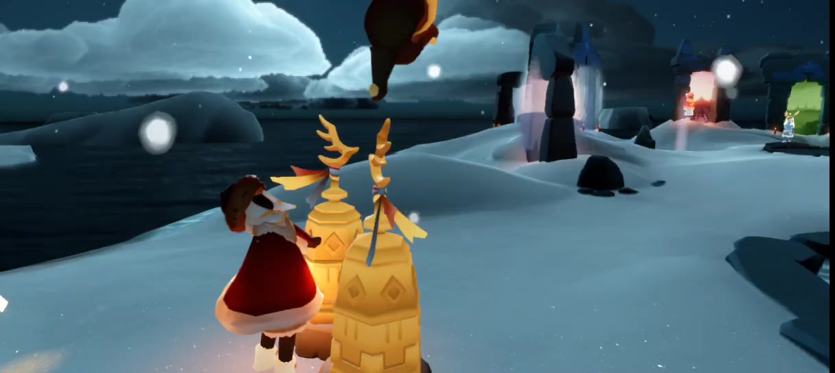 这个季节常驻换的铃铛很没用啊,只能自己听个响,同时摸两个铃铛技巧,就是正面夹在两个铃铛中间,光崽左手放左边铃铛上,然后摸右边的铃#光遇 铛,就能一起响啦