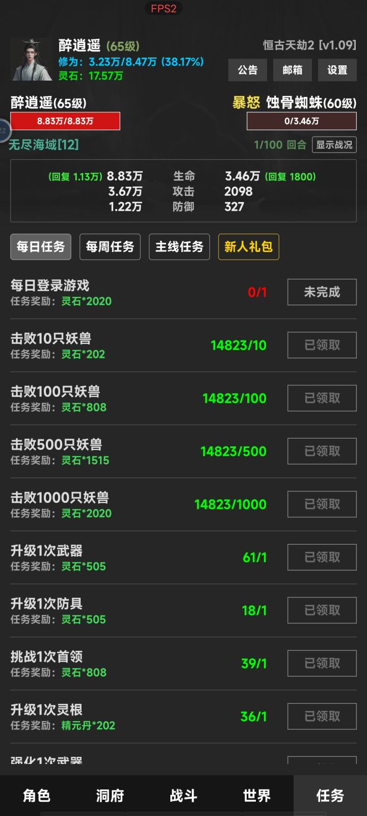 总体来说还不错的收菜文字游戏,一个是感觉内容还是少一些,丰富一些武功,门派,宠物就更好了。还有就是新人礼包,和登录为啥领不了?