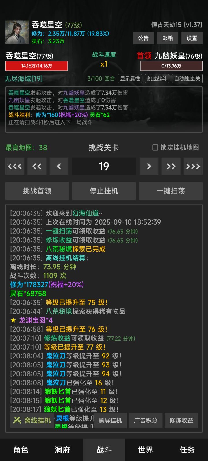 最后是游戏功能体验,其实这也算放置游戏的通病了,但这游戏更严重一些罢了,还连装备都是固定的,随机性约等于无,主要大的提升都是固定资源提升,花多少提升多少,这让我想到了资源流修仙——凡人修仙传,但那本小说里面还能有奇遇,下本呢,这里就不一样了,一分耕耘,一分收获,该不该说很可能这才是真正的天道酬勤,总结:这等于说你一天资源多少,多少天可以提升到对应阶段其实都是可以算出来的,太死气沉沉了,我个人不太喜欢这种一眼看得到头的感觉,毕竟我现实就是这样了,不想在游戏里面再体验一次。