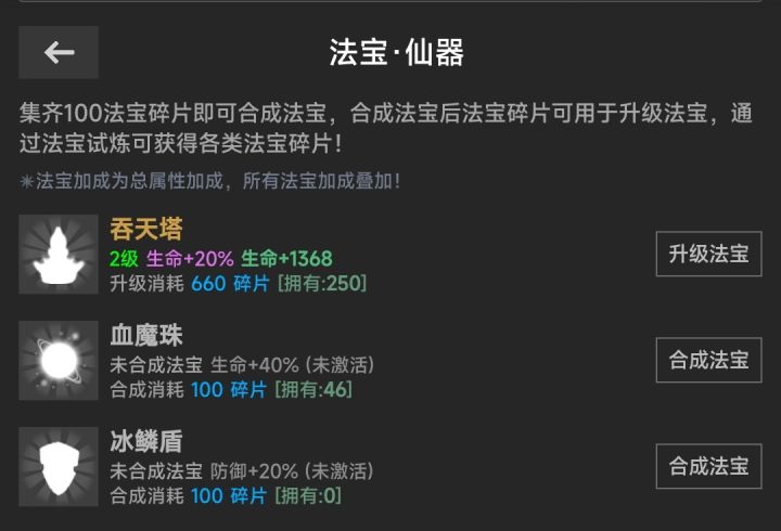 更新礼包码:UP0419v1.13更新内容(0419)- 新增法宝系统(洞府)- 新增:法宝试炼(历练)- 提升每日任务奖励- 优化游戏UI界面- 修复秘境问题