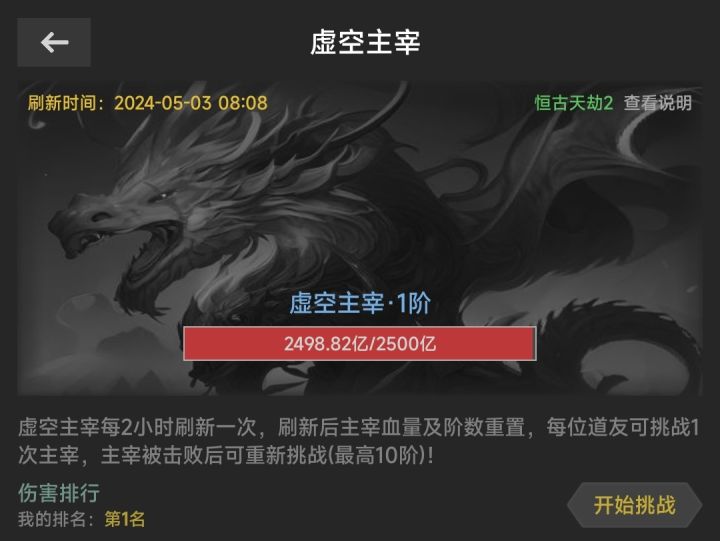 《幻海仙道》新玩法虚空主宰已上线!诸位道友可前往历练→虚空主宰挑战BOSS,每2小时刷新主宰,主宰被击败后可重新挑战!