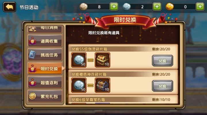 在节日活动期间,能够通过每日组队探险等途径获得不同数量的金星币,使用金星币可在活动-限时兑换界面中兑换SSS级剑灵箱、高级剑魂碎片箱、剑魂·赤霄皮肤等超多珍贵养成道具~