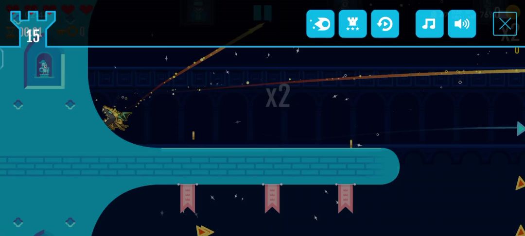 楼主来填坑了~说是技巧也不是什么特别难的事情,基本操作大家都知道,滑动屏幕可以控制角色的飞行和射击方向。如果在滑动之后手指不离开屏幕,那么就会进入“慢镜头”。在这个慢镜头状态下你可以慢慢调整自己的下一次攻击或者飞行的角度,并且这个状态只要你手指一直保持按住屏幕的状态就不会结束。图片中就是这个状态,绿色的箭头是飞行的方向,红色的箭头是攻击的方向。这个状态还有一个特点,那就是你可以同时调整两种方向,也可以在按住一边屏幕的状态下操作另一边屏幕,比如说上面图中的状态;大家可以看到楼主是用两个手指头按住的屏幕(屏幕上的两个白点)。这时,如果我松开左边屏幕而不放开右边屏幕,那么角色就会保持在慢镜头状态下朝你调整的方向飞行。并且只要我不放开右边屏幕,我还可以重复这个操作。这样操作有什么用呢?这是个节奏很快的游戏,试想一下如果你是在玩一个节奏大师那样的音乐类游戏,把所有的东西速度变成原来的三分之一,你就不会按漏或者按错了。这游戏也是这样。在上面的操作中,玩家可以主动进入这样的慢速状态,并且只要你愿意,你可以保持慢速状态玩完整局游戏!这就是刷金币的精髓所在。游戏中每个生物,无论是小兵还是绵羊(大概是绵羊吧?)受到第一次攻击之后过一段时间才会消失。在这段时间内你可以重复攻击同一个目标。每个生物在消失之前都可以承受累计5次的攻击,对同一个目标攻击5次目标就会直接消失。这样的话,每个生物可以提供5个金币和*5的倍数,那么就是说,在地图上出现第三个生物的时候,你就可以把倍数打到*12;然后利用这个效果的持续时间慢镜头操作,就可以刷到大量金币!这也表示,每个关卡每次可以刷到的金币是有上限的,即第一个生物出现之前的固有金币+(5+第二个生物到第三个生物之间的固有金币)*5+地图上剩下的所有生物的数量*5*12+地图上剩下的固有金币*12补充:理论上只要操作得当,你甚至可以让最后那个宝箱里的金币翻12倍!虽然很难但是并不是没有可能。总结一下,就是不要放空枪,好好利用地图上任何生物,然后加上慢镜头操作,最后还需要一点点的角度控制以及运气,你也可以刷到很高的金币哟~那么,祝大家玩的愉快!✧٩(ˊωˋ*)و✧