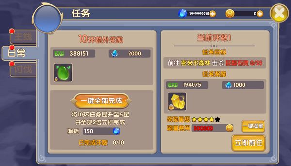 日常任务作为《大公爵》中前期快速升级的重要途径,在这里小编需要和小伙伴们分享这其中乐趣啦。在《大公爵》中日常系统中,各类日常任务、日常活动、日常讨伐以及副本都是小伙伴们每天需要完成的任务,不能错失任何一个升级提升的机会。日常任务是一个日常环任务,总计十环。每完成一环就能获得高额的经验和材料奖励,同时,小伙伴们在完成每一环任务时,还可以花费金币将奖励星级提升至五星,就能额外获得更多的奖励。也可以选