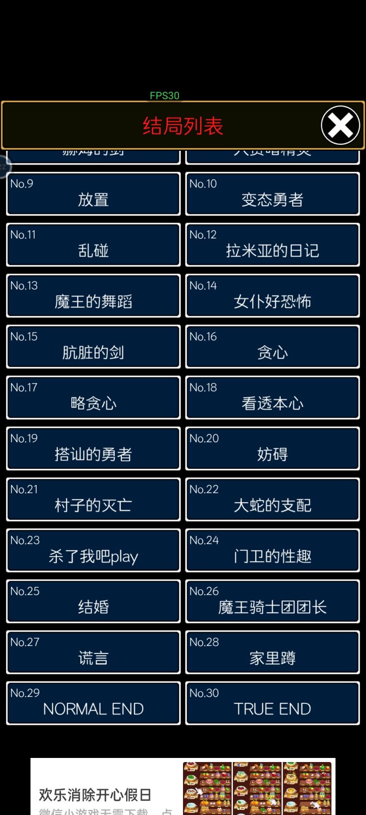 第十二关:左边第一个开始向下依次把剑拖给魔王,选择与公主战斗——NE(结局29)