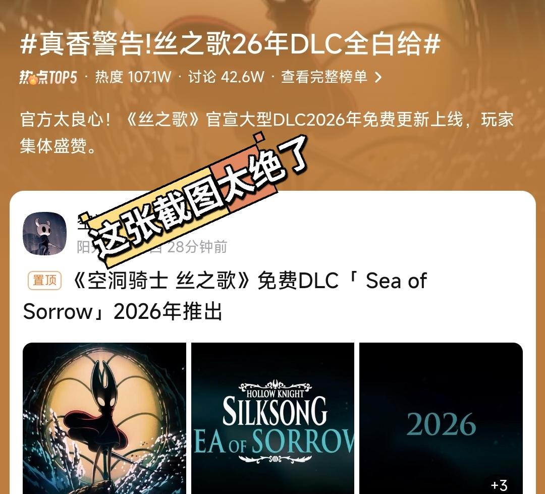 官方宣布2026年DLC免费,这波操作真的太良心了哈哈#主机单机 #空洞骑士丝之歌 #丝之歌 #空洞骑士 #游戏资讯 #丝之歌免费dlc明年推出
