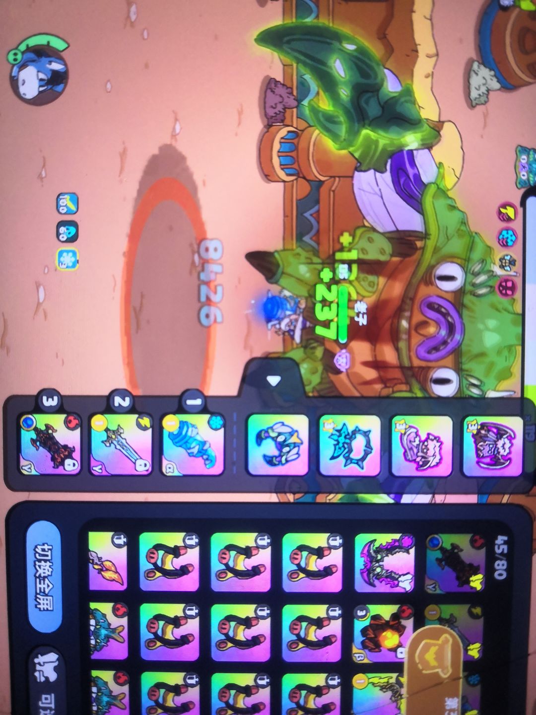 如图所示 站在boos头顶的墙上外放声音 听到刷完了捡一下装备就行 没什么攻略 就是堆冰伤保证每一下能有3000伤害就能挂机 朴实无华