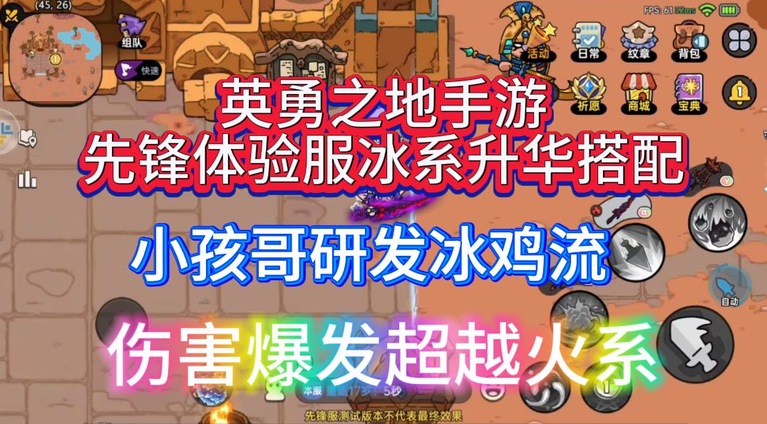 英勇之地手游先锋体验服冰系搭配再度升华,这次应该是公测前最终搭配了,冰系不依赖暴击爆伤,只需要叠易伤就可以,氪金获得的传说更衣镜可以不用买,神器也不是很依赖,适合贫民低氪度玩家。并且装备获得全在副本里面,也不需要肝,每天打打副本,打打军团,深海就可以。当然要求低并不代表不强,这套完全可以让贫民吊打其他系氪金玩家,如果氪金玩这套应该会再次给冰系带到另一个高度。如公测不削的情况下,放心玩。可关注我的粉