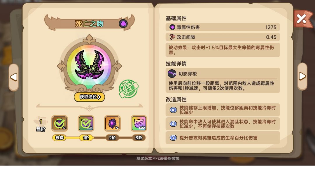 新手攻略里的我就不写了,把我有的剩下几个武器简评写一下。后续补不补写别的看心情。 【虫刀】死亡之吻 位移的神,很远的位移,很可观的平a伤害。经常用,但是没必要养,一般不主要用来打伤害。改造没了端游的减cd,三段的话感觉有点短,不过也凑合。要么不改要么三段吧。 获取方式:1.森林的毒蛾 2.毒蛾副本 【鞭子】编织者 改造可以吸体力,前期pvp较为强势。 注意大招可能会坑队友,未手持编织者的都会被减速