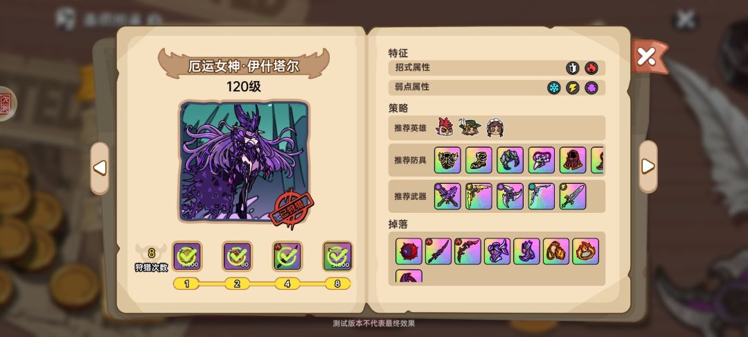 #新游试玩节 狂猪族长 血量100000攻击属性火攻击怪物类型BOSS产出:圣光使者套装、万血散件、时光折跃套装、女神祝福套装、星焱战斧、森林之心法杖、风神之弓、噬魂蛇杖、雷鸣之握、流光惊雷、五星武器 凋零古树·西尔瓦努斯 血量5000000攻击属性物理攻击怪物类型BOSS产出:凋零古树图腾,荆棘之歌,六星凋零古树藤甲,六星凋零古树藤鞋,六星永恒树心指环,凋零紫叶