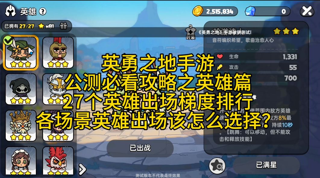 最新数据的《英勇之地》英雄排名及核心分析