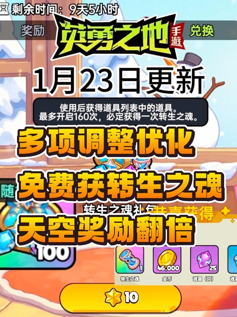 英勇1月23日更新 多项优化调整 转生之魂免费送
