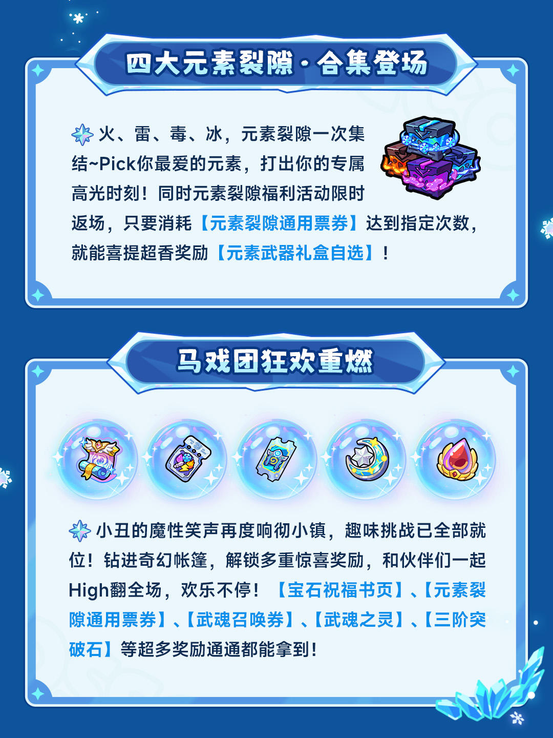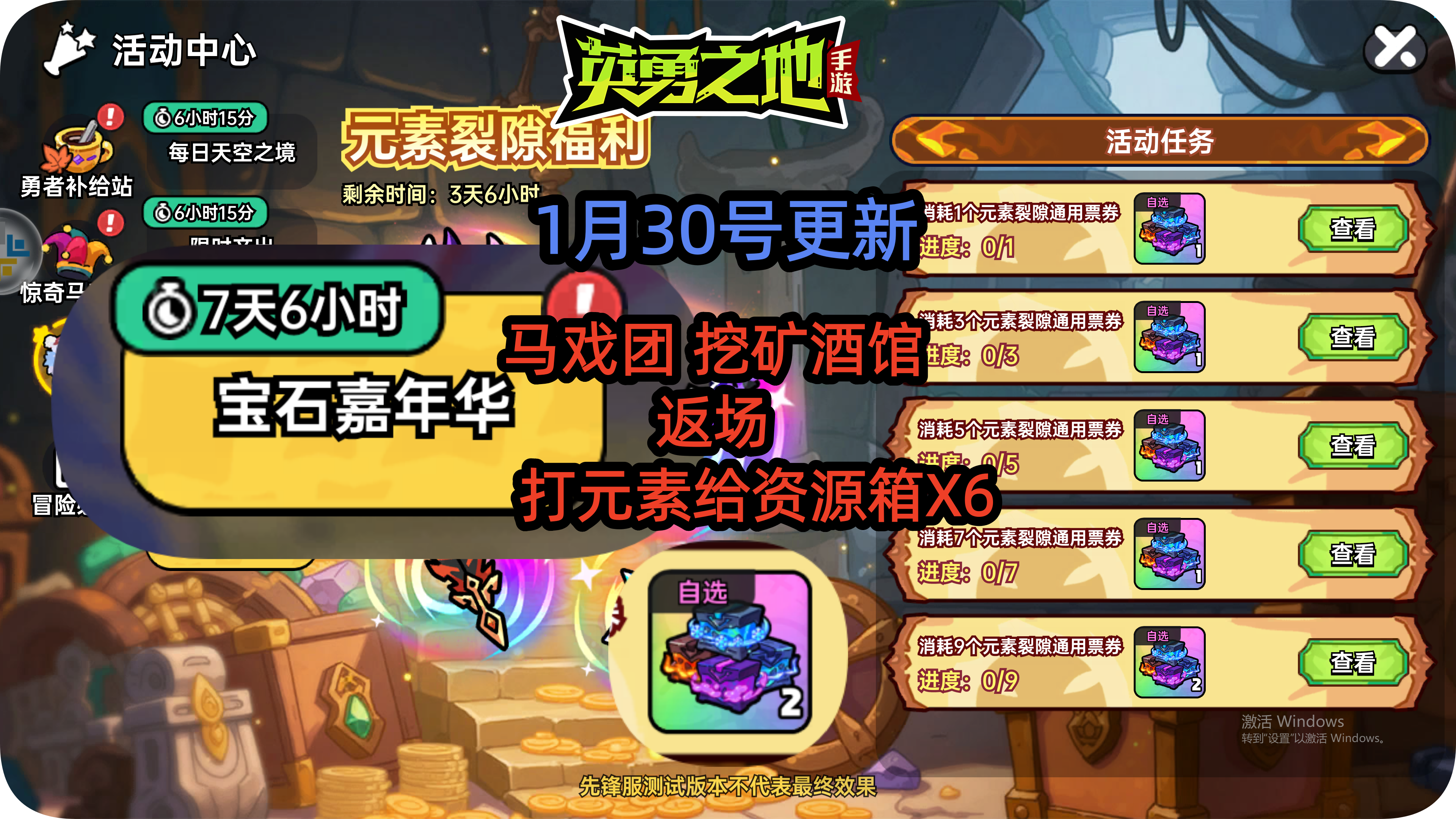 1月30日更新内容 马戏团 挖矿酒馆 返场 打元素给资源箱X6
