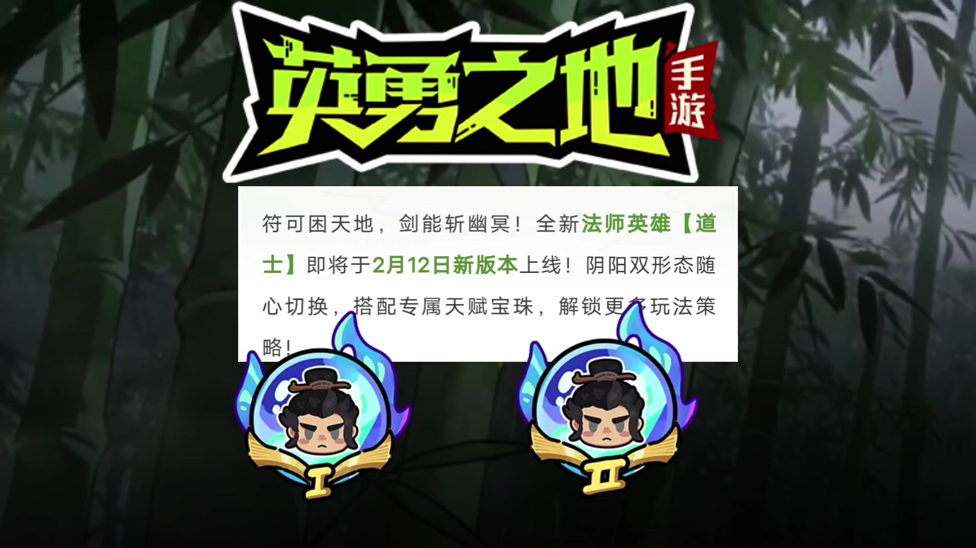 符可困天地,剑能斩幽冥!全新法师英雄【道士】即将于2月12日新版本上线!阴阳双形态随心切换,搭配专属天赋宝珠,解锁更多玩法策略!