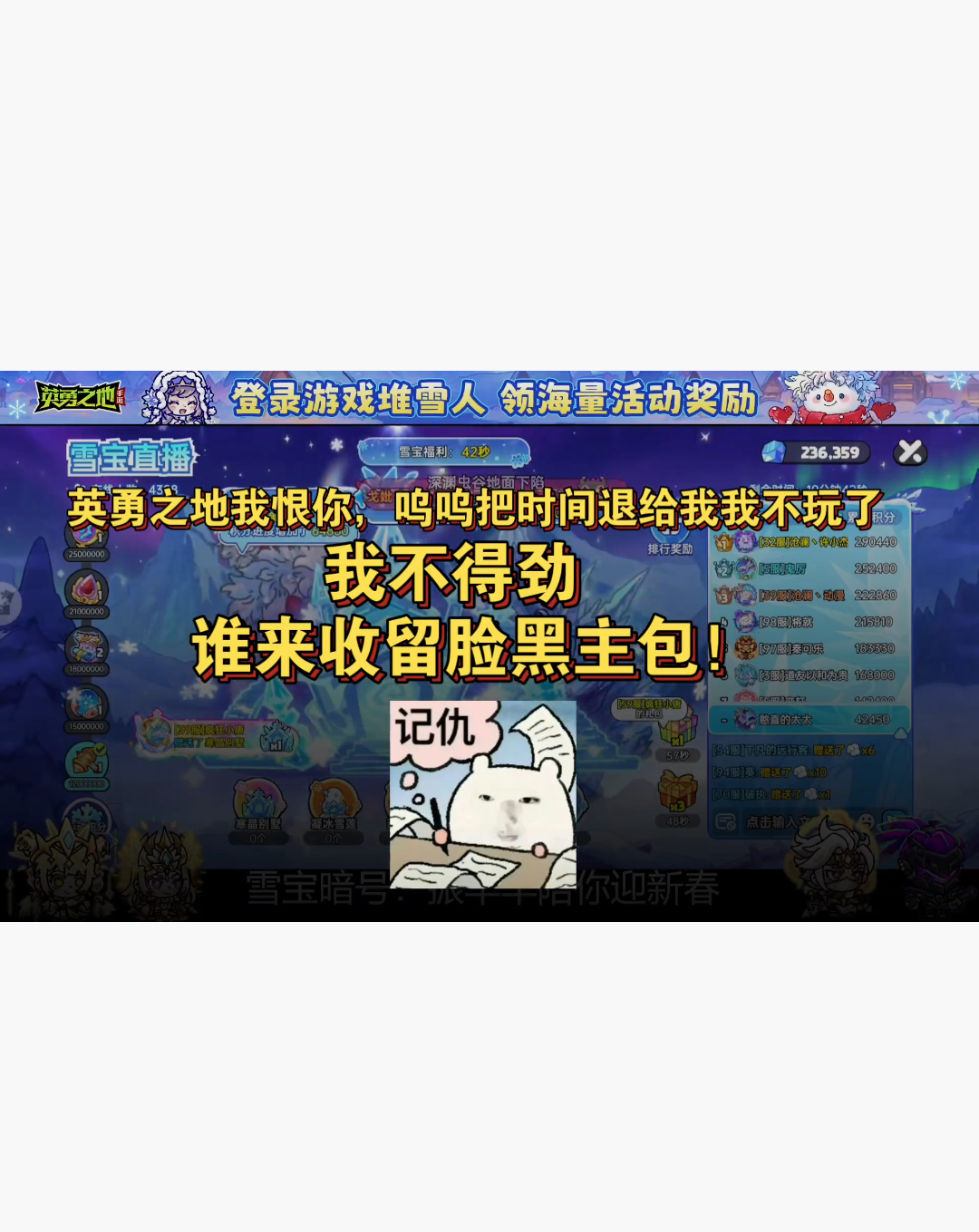 雪宝直播脸黑的兄弟们集合了😭