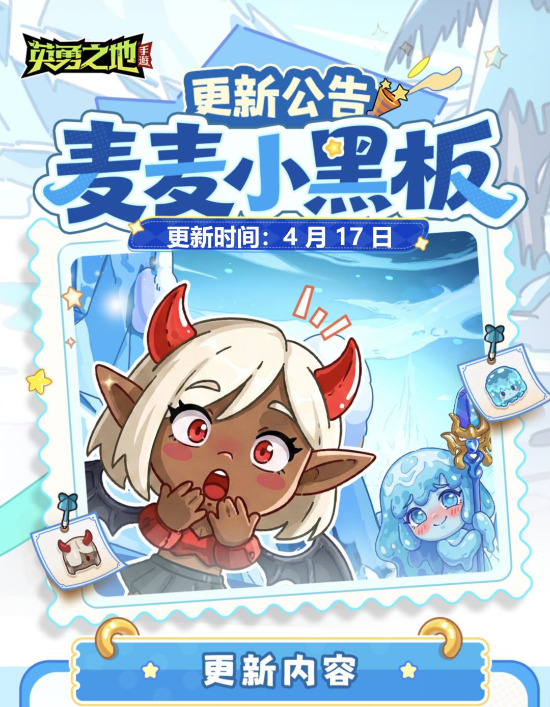 英勇之地手游 麦麦小黑板 4月17号更新内容