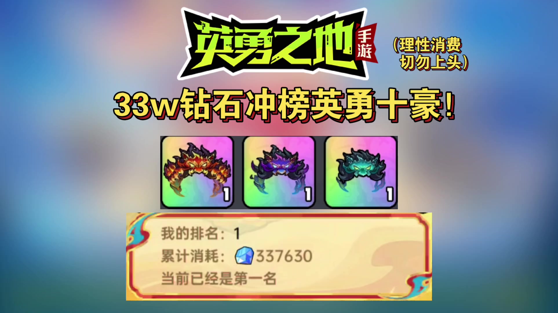 33万钻石冲刺英勇神豪最后时刻!!