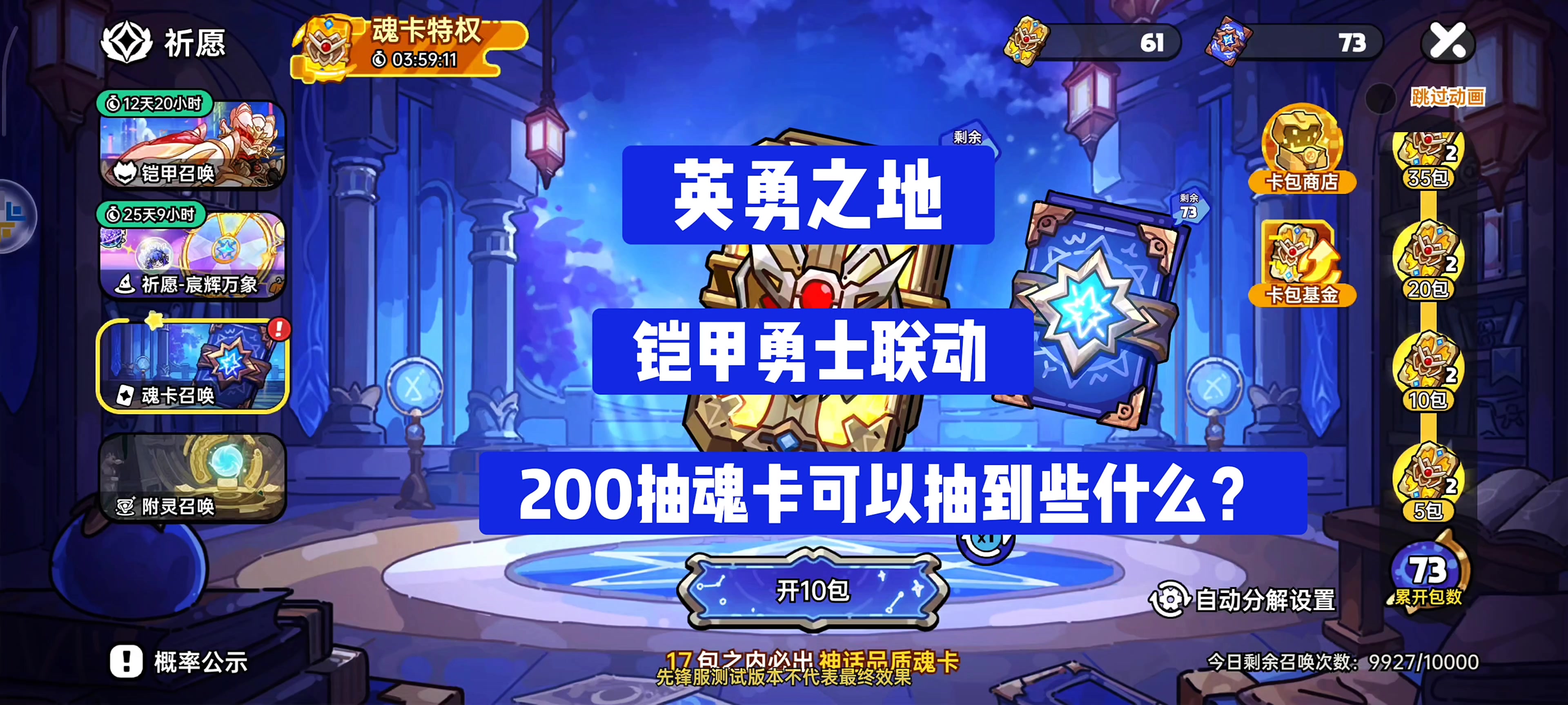 英勇之地铠甲勇士联动,200抽魂卡会出多少彩卡呢