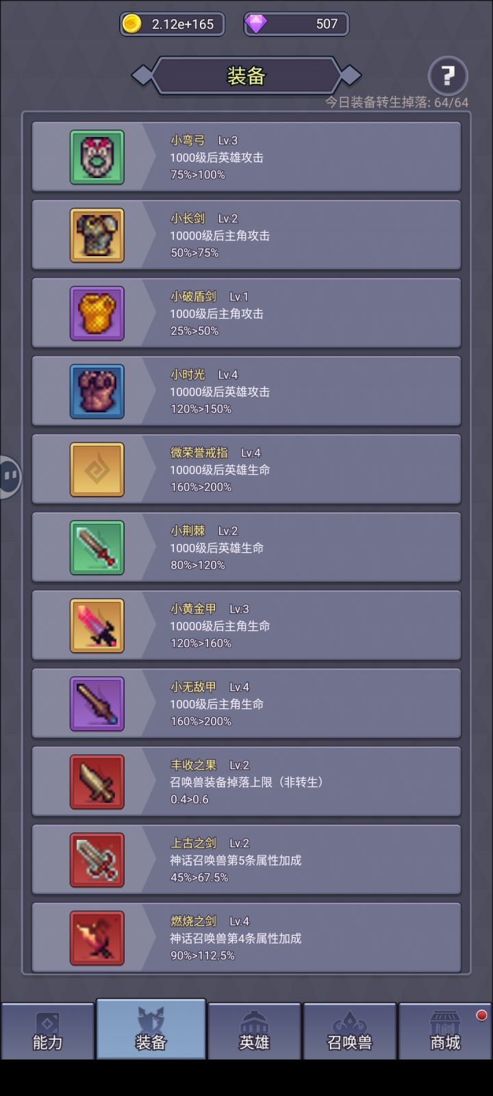 60多件装备上限,转生30分钟就全拿了。一天就结束了。