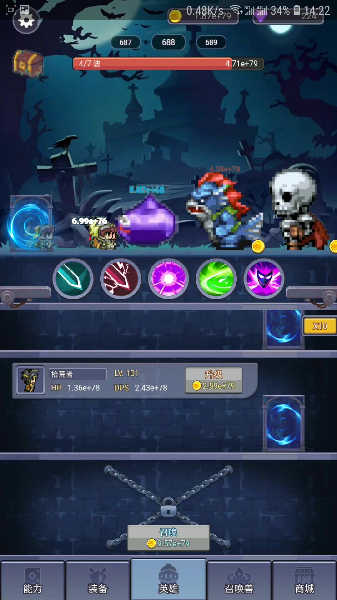 开局可以先看广告和钻石购买,六件装备。打怪掉落先别想了,需要“能力”升级。前面的英雄等级不用升太高,留资源后面开英雄。(资源主要来源依旧是广告,左上角的“宝箱”)#单机游戏#攻略