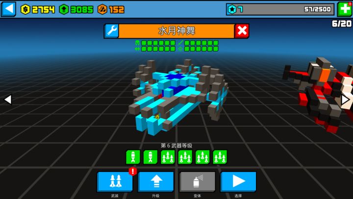 这个游戏的座驾是能自己diy的,点击主界面的汽车图标进入车库。左右横移选择车辆,车辆的名字旁边有个小扳手,点击可以对车辆diy。如图所示,将核心部件包裹住,并在地盘上平等均匀的安置悬浮部件,这样车的雏形就完成了。下面说的是个新手常犯的错。车辆雏形完成就要装武器了,有时候武器装了却是朝屁股后面开枪,车辆倒退飞行什么的,这里就是你diy时候没注意地上的剪头,那是车辆前进方向也是武器开火方向。武器开
