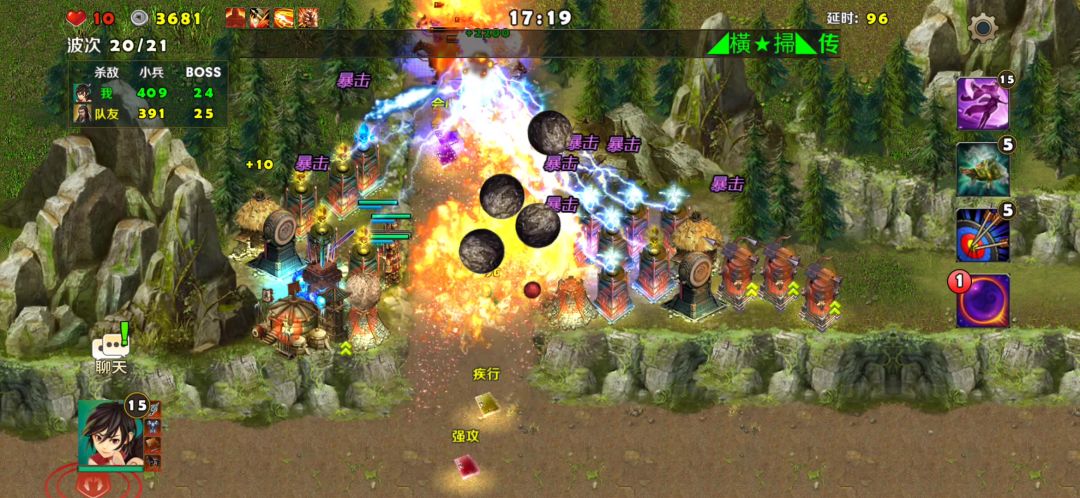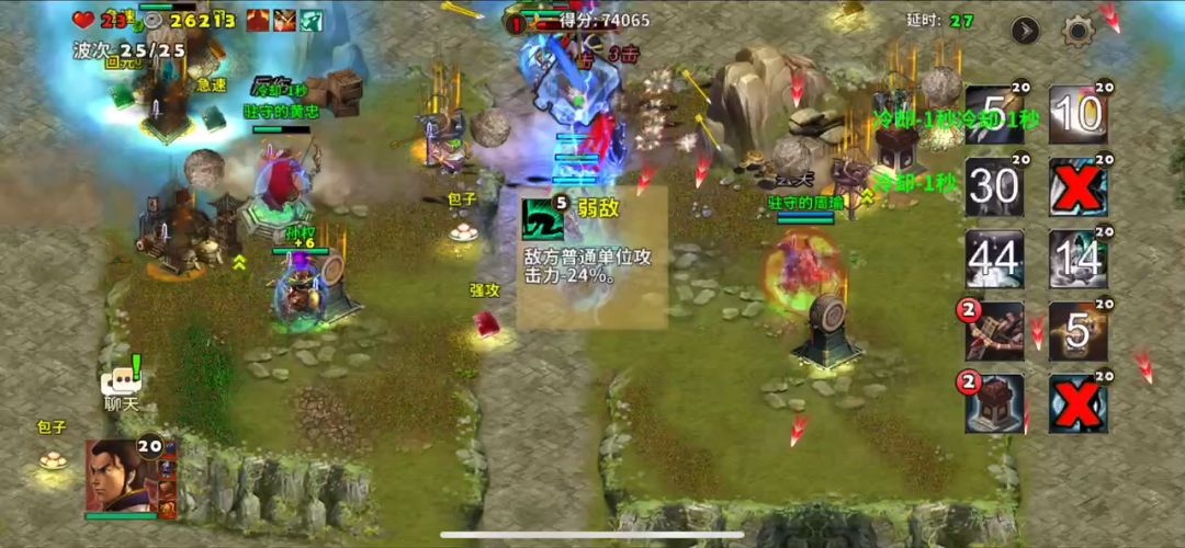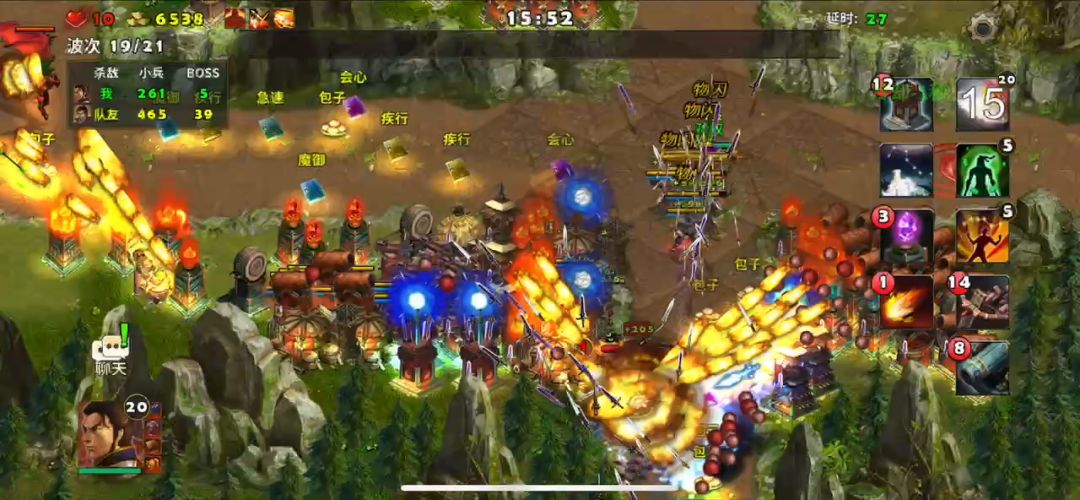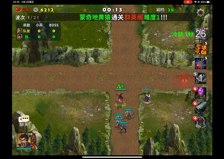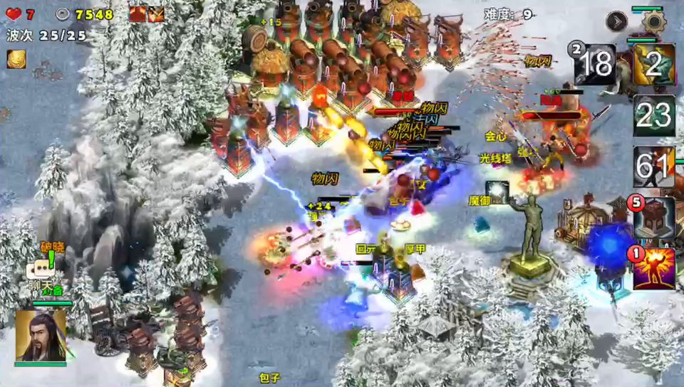 武将升级就去打群英阁,没有别的比群英阁升级武将在快的地图了,运气好能再铁人雕像这抽到了几张特殊卡片就基本无难度过关了,这局主力用的是雷电塔,巨炮塔,和弩箭塔,配合了一些打怪掉落的激光和飞刀塔防,紧凑的建造是过关的前提,能集中火力杀伤敌人,侥幸有漏网之怪的话,弩箭不管它跑多远,都会将其击杀,真是个好卡。有视频又真相,欢迎新人参考