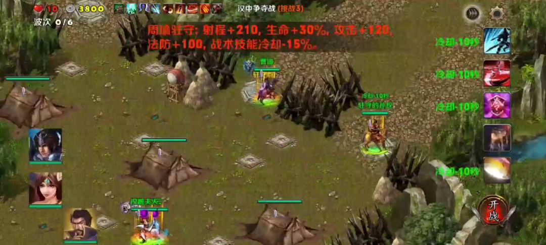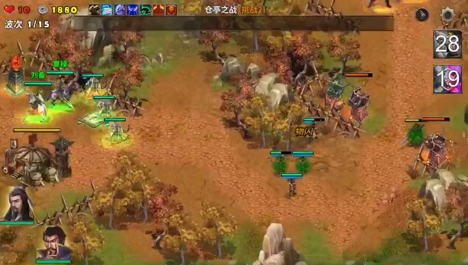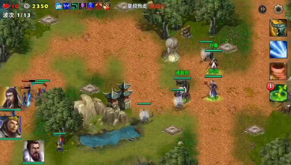 推荐英雄:刘备 后援:圣兽、霹雳车 打法思路:在选择英雄这块我选的刘备带的孟德新书给防御塔加伤。开局刘备站下方让两边都可以吃到buff加成。然后在直角位置建造滚石塔阻挡敌方步兵,上方建造术塔左边建造狙击箭塔补刀。因为不会叠塔所以只有老老实实建造。卡片这方面如果是给塔加成的我们尽量选自己建造的塔(巨炮塔、滚石塔、狙击箭塔、天雷塔)主动技能肉钩、召唤类,被动技能:死亡冰冻、死亡自爆、死亡空血。如果有被