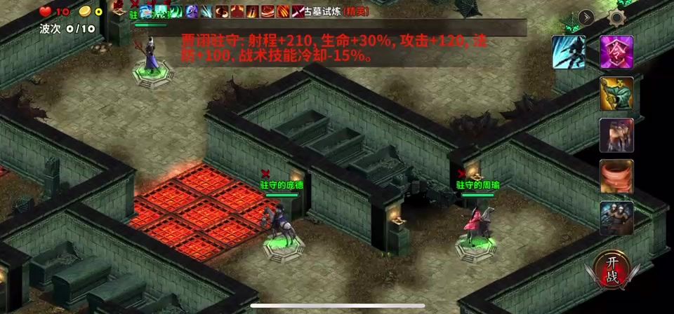 通关了策马守天关的皇叔败走这一关,我们来到了白马之围关卡,出阵可以选用两员武将,选择了曹操和郭嘉,主要是考虑到这两个武将都可以拿经验升级,塔防选用雷电塔。敌人一共要进攻10轮。战斗中要注意敌人的投石车,它会在我们塔防打不到的范围内攻击我们的塔防,出来要第一时间杀掉,最后会出来颜良文丑。利用塔防先杀掉小兵配合武将杀颜良文丑就容易多了,请参考视频