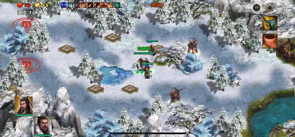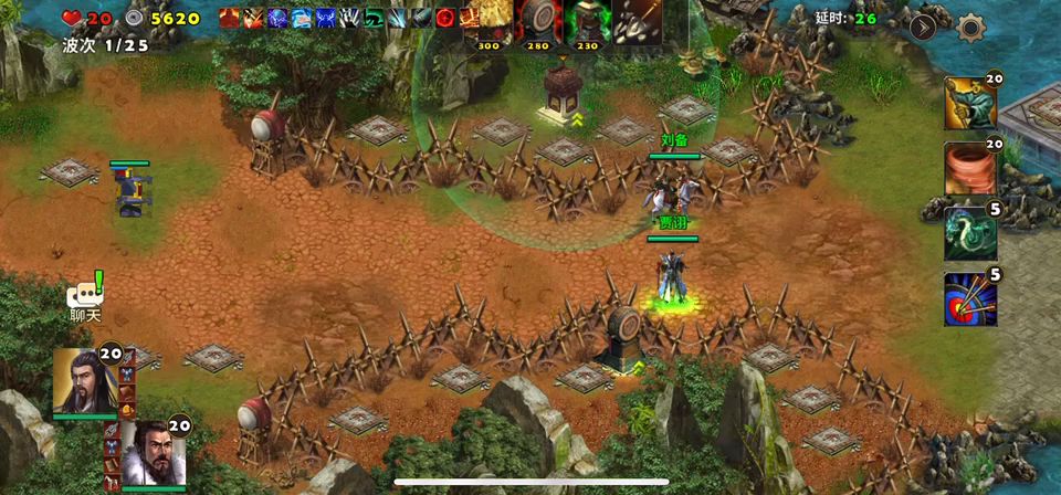 借东风这局前面基本都没有难度,一般都可以防守住,就是最后的BOSS不好打,打了6分钟左右。不敢开加速,2倍速保不齐就翻车,难度的关卡就可以自由的选择武将了,武将选用刘备,黄月英和周瑜,塔防一如既往的选择等级高的法术塔。游戏开始三员武将要分开御敌(参照视频),快速建造起西南的水上塔防,尽量做到不让敌船靠岸卸货。升级塔防增加攻击,最后一轮的BOSS目标明确,就是要孔明来的。千万不要让他靠近孔明,利用塔