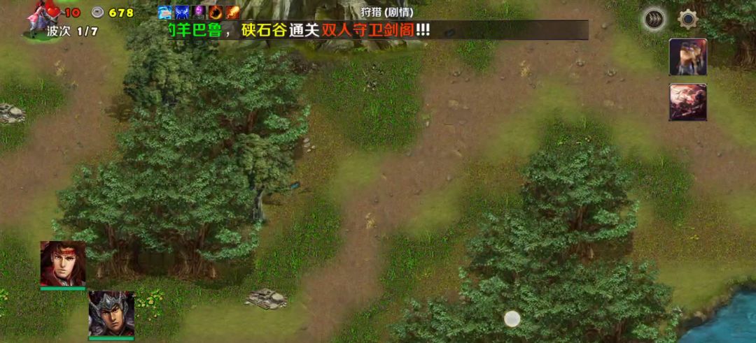 这关7波,算比较少的了,要保护好孙策,不算太难,两英雄移动保护下就好,这个地形很像军团副本运粮。中途造点火塔可以稳过,周瑜还可以放水鬼。