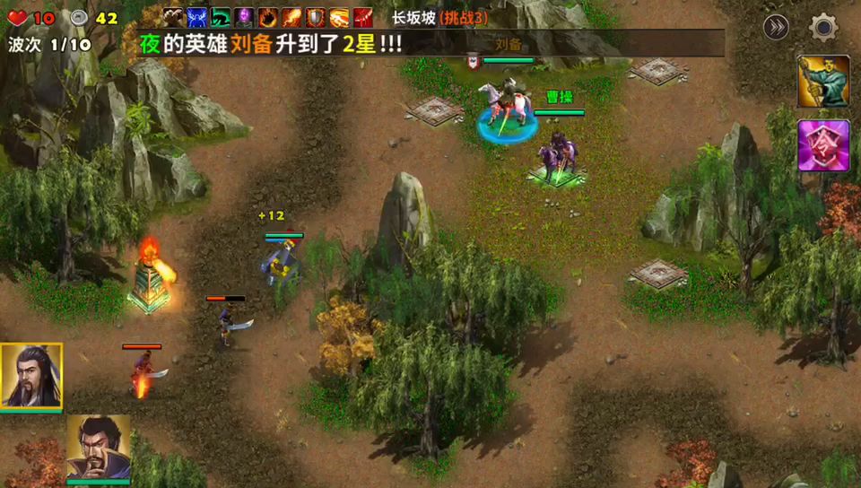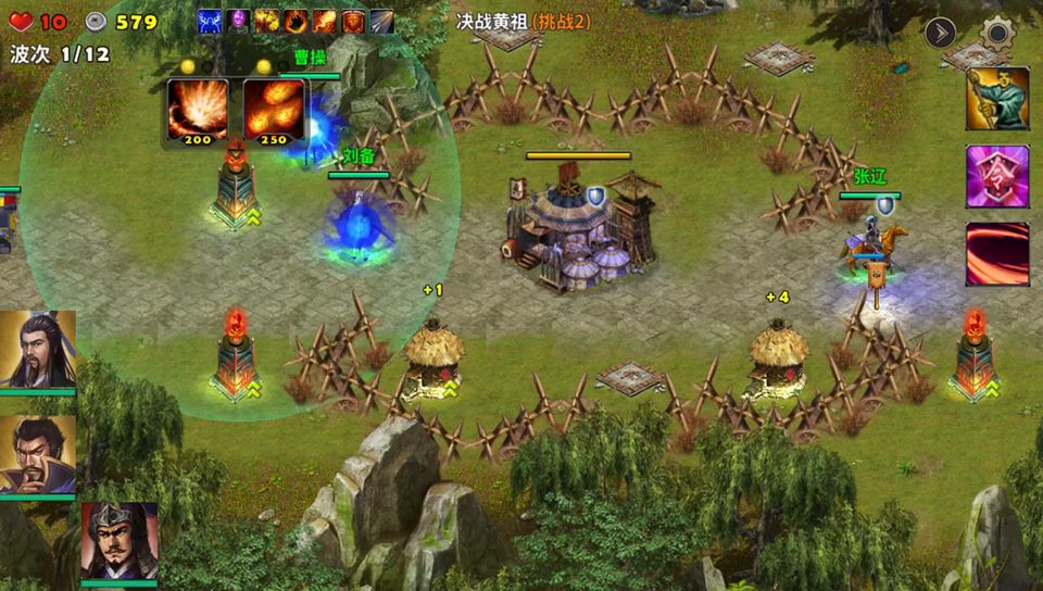 艰难的过了卧龙出山后,拿到了诸葛亮。诸葛出山后,第一站火烧博望坡开始了,来到了火烧博望坡这一关,可以选择三个武将,我选的是刘备黄月英和关羽,选好了自己的塔防后,三个武将在中间段伺机待敌,先用塔防消耗一部分敌人后,三个武将再杀剩余残敌,只要你的塔防等级在34级或5级,基本上没什么难度过关,请参考视频~!