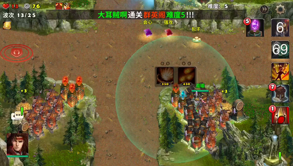群英阁这个地图好玩,升级武将又有宝图可以赚,选好需要升级的武将去打群英阁,这个图老玩家平推,新玩家需要抽卡看命了,建议用火焰塔和远程的弩箭塔就可以。难度系数1就行,只要过了就可以有大量的经验可以拿到!我这局运气是真好,抽到了一个紫卡。一列可以整个地图转一圈小火车。出来的全部敌人都会被砸死。可惜是一列晚点的小火车,没起到什么作用,没有见过小火车的玩家可以看视频开开眼。