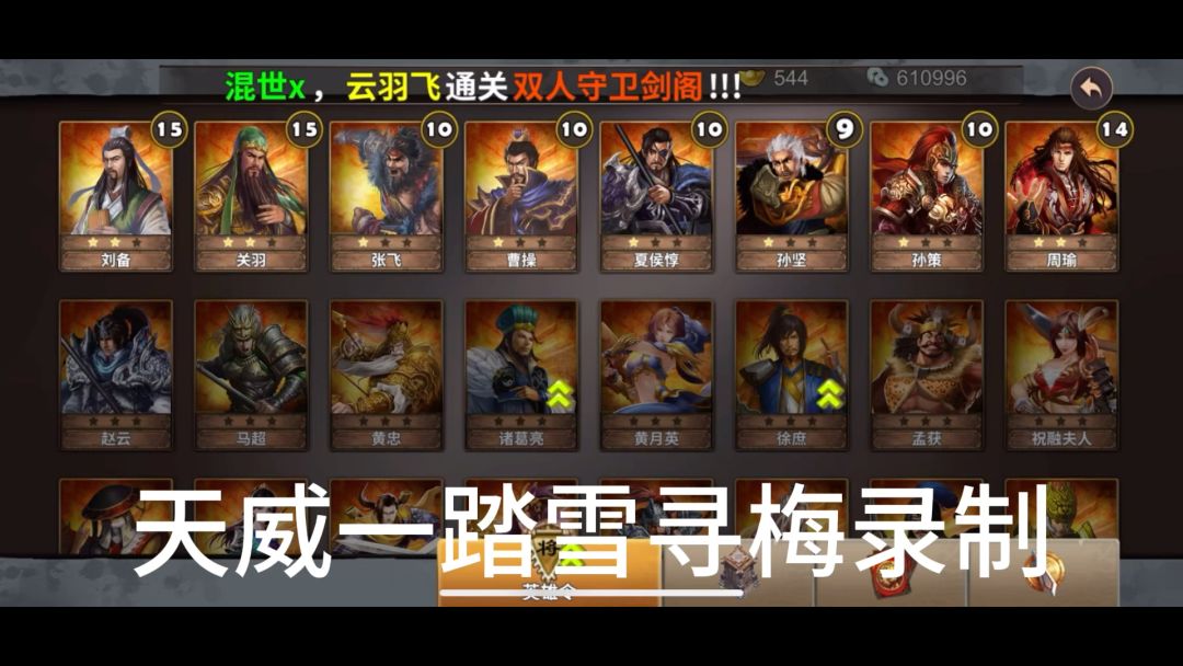 武将的升级在天关挺慢的,我的关羽可以升级到15级了,只是要需要大量的经验值才可以,打地图一局下来才不到100经验值,实在是太慢了,管段的打群英阁就行,这次运气好,一把就过了,再打击次到15级~!