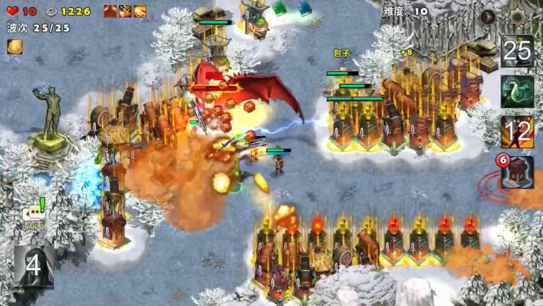 魔塔杀阵,4级的塔防基本上操作不失误就通关。这个地图没有开始键让你先建造塔防,进去就直接开始战斗了。要迅速的建造几个火焰塔防止敌人偷塔,毒箭塔和弩箭塔建造在敌人的出口处,毒箭塔能减缓敌人的移动速度,弩箭可以远程杀伤敌人,打出来的远程宝石也是过关的关键,全部都给火塔用上,远程宝石镶嵌的塔防最好再加上防御宝石让塔防可以回血,英雄穿堪蓝宝甲,防止敌人的孔明灯偷塔,最后的BOSS不是张角就是吕布,有远程宝