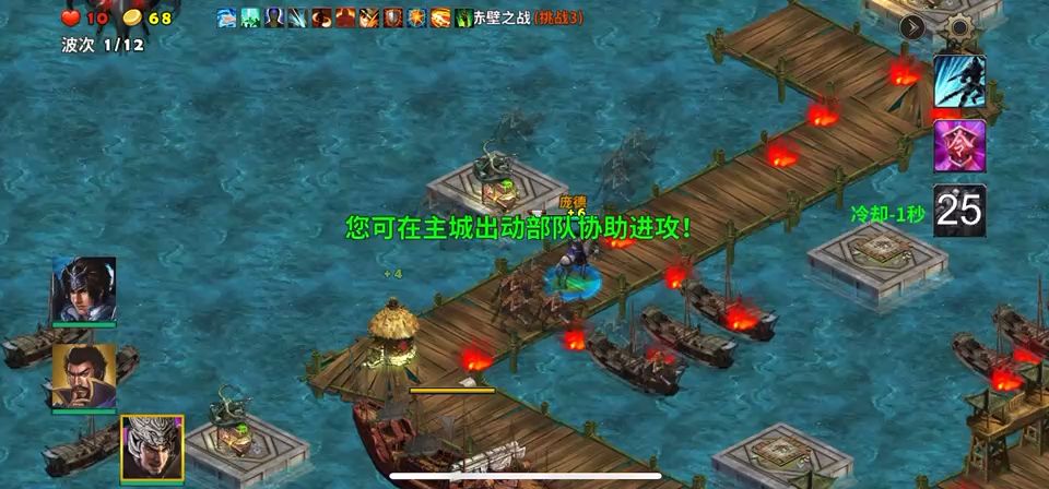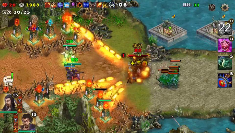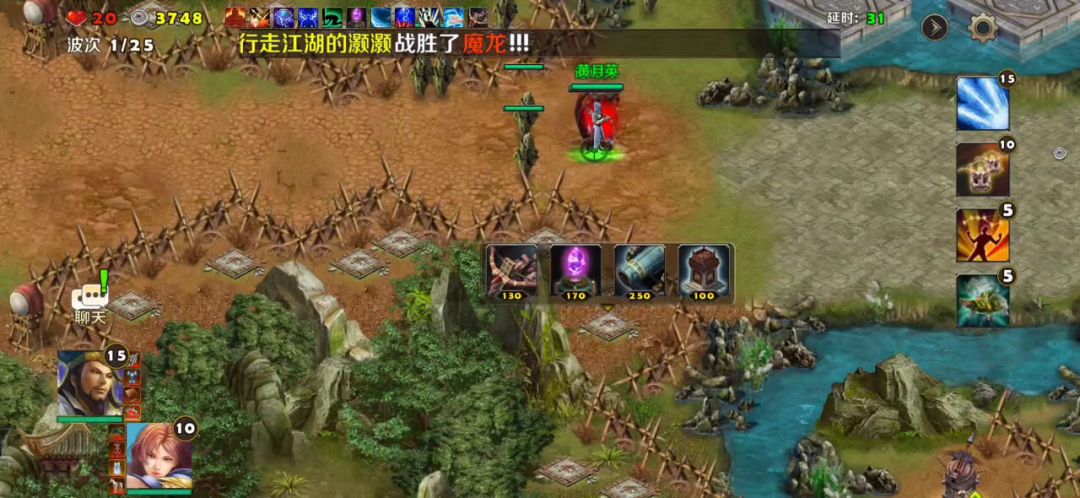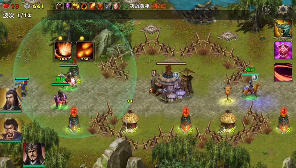随着各种塔防和战术卡片的不断升级,基本都达到了5级打这个魔塔杀阵。开局就选了刘备和曹操。配装:贪狼。坎蓝宝甲。孟德新书和壁酉鸡,曹操的装备基本一样,战术卡片选用的:妙手回春,破敌,弱敌。塔基加固。先者之音,开局快速建造2个擂鼓台和几个火焰塔后,5个粮草造起来增加金币,再慢慢的把所有的塔防造齐后。前面的升级完善,远程的宝石至关重要,优先安装在前排。刘备曹操有召唤功能,可以应急,这样基本就可以平躺过关