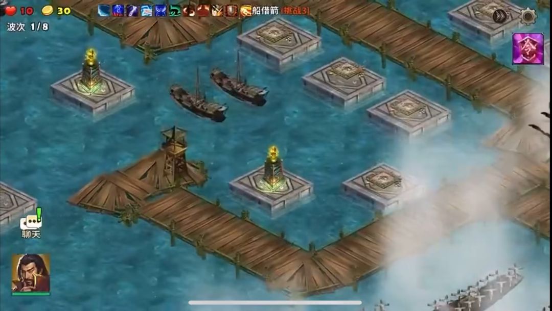 进入地图推荐用曹操,开局先把手上的金币全购买天雷塔放置在塔基上再点开始,这局没有塔防的协助真是不好打,敌人两路水上登陆的沿途的塔防打击他们只能把他们打残并不能解决掉他们,需要英雄补刀才行。后面随着金币增加把塔防全部建成和升级级慢慢好过了。最后的敌将尽量用弓箭手挡住他再外围利用塔防消灭他。 进入地图推荐用曹操,开局先把手上的金币全购买天雷塔放置在塔基上再点开始,这局没有塔防的协助真是不好打,敌人两路