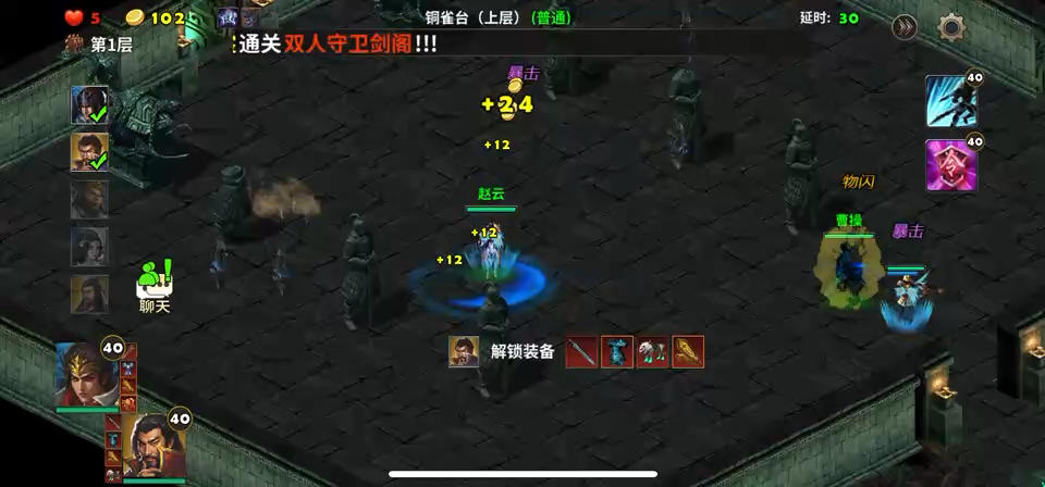 游戏副本之一,三个难度等级剧情基本一样,敌人大军进犯剑阁我方英雄守卫不让敌人通过,开局是一级武将,商店购买塔防协助拒敌,四处寻找野狼和强盗升级英雄等级,抽取铁人像的未知战术卡趣味感更强,击败出来的敌将有几率爆出装备武装英雄,不需要的可以变卖购买塔防,整场战斗时间有点长,空闲娱乐很是过瘾。