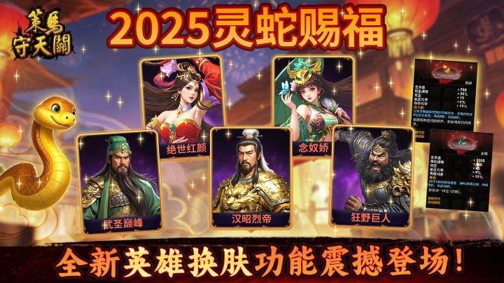 随着2025年春节的临近,《策马守天关》也迎来了一次重大的更新,为玩家们带来了全新的游戏体验。本次更新以“灵蛇赐福”为主题,推出了多款新皮肤、活动副本、新英雄、新装备以及其他多项更新内容,让玩家们在春节期间能够享受到更加丰富多彩的游戏乐趣。一、活动副本《灵蛇赐福》闪亮登场活动时间:2025年1月25日00:00 – 2025年2月13日23:59新年伊始,天降灵蛇,赐福众生。想要获得灵蛇的宝