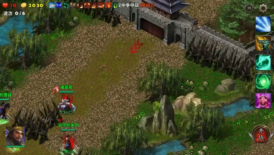平民打法拿下这关难度的三星这张图就全部通关了,选择五个英雄参战,没有赵云就用诸葛亮吧也挺好使的,其他四将守护本营,诸葛亮攻打汉中,用卧龙光线打城门同时还能伤害到城内的敌兵敌将还有塔防和兵营,冷却时间到了就放打击敌人,先击败赵云,关羽和张飞后用可以召唤士兵的英雄尽数摧毁敌人塔防再击中攻击刘备,双方互攻的地图挺好的感受。