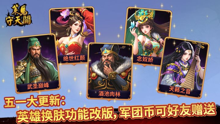《策马守天关》喜迎五一:英雄换肤功能大改版,军团币可好友赠送