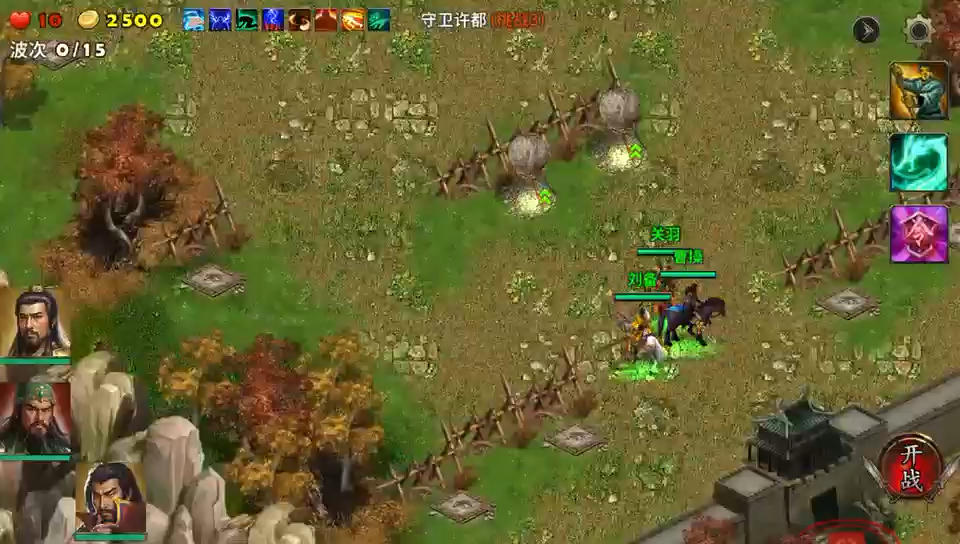 这个地图的最后一个难度,打完这局的星星成就全部收齐了,体会不到难度增加了多少,可能是端午参加活动变强大了吧,英雄强大起来建造塔防纯属多余,三个英雄就守住通往许都的门口堵门就不会有漏网的敌人偷塔,两个滚石塔升级到最大等敌人来就行了。战斗中注意敌人投石车,实在无聊分出一将上去过过瘾也不是不行,愉快的通关不往充值一场。