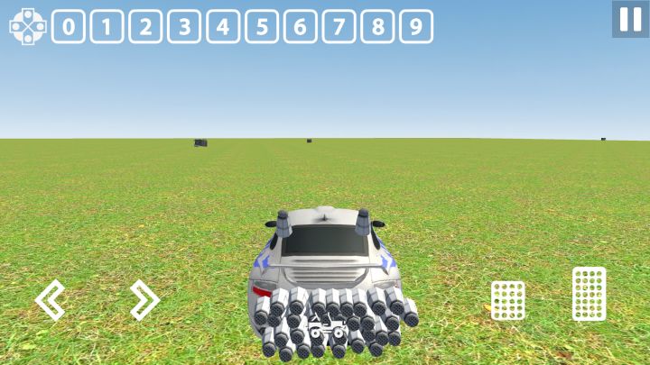 使用汽车:雪佛兰科迈罗设置(如图三)使用道具(如图一)效果(如图二)(需在车顶后面增加两个火箭喷射器,以防受力不均而导致翻车)