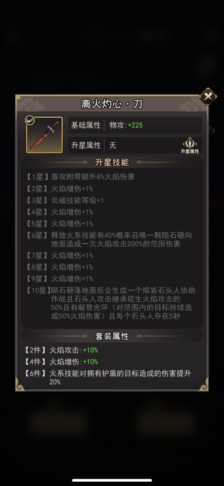 这游戏暂时有五套装备,接下来让我来帮大家快速了解这五套装备!希望能给大家提供点装备选择思路.朽木套:适合给主玩毒元素技能加成的装备,6套后的cd减少和灵气消耗减少可以让你们多次释放技能!(多段且持续性伤害套)优点:伤害稳定!而且控多甚至有草人诱敌!缺点:没啥爆发伤害!属于(活着才有输出类!)白夜套:适合主玩冰元素技能加成的装备,6套后开局就有百分之十五生命护盾(前期无伤抗小怪)优点:冰属